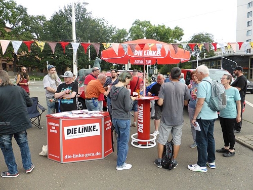 So haben am 3. Dezember 2003 rund 1300 Menschen an der ersten von uns organisierten Demonstration gegen Sozialabbau teilgenommen. Bei einer Veranstaltung im Vorfeld der Einführung der unerträglichen »Gesundheitsreform« konnten wir immerhin 100 Teilnehmer begrüßen. Und an der Mobilisierung in Ostthüringen zur Großdemonstration am 3. Juni 2004 in Berlin hat auch unsere Initiative wesentlichen Anteil.
